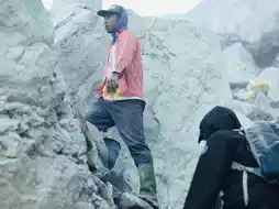 During our climb, we witnessed the process of sulfur extraction and production. We saw the miners digging, breaking, and carrying sulfur step by step. At the end of a long day, their wages were pitifully low. We tried to greet them kindly and take some photos to document our journey. However, shortly after we started taking pictures, one of the miners immediately gestured for money. We smiled and politely responded, "Sorry," but the miner's attitude changed instantly, showing obvious displeasure and even a hint of impatience and indifference.