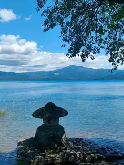 On the shores of Lake Tazawa stands a golden statue of a woman known as "Tatsuko Statue," a popular photo spot for social media enthusiasts. The reflection on the lake adds to its charm. According to legend, a girl named Tatsuko wished for eternal beauty but was transformed into a dragon and became the lake's deity. The statue was erected to commemorate this tale.