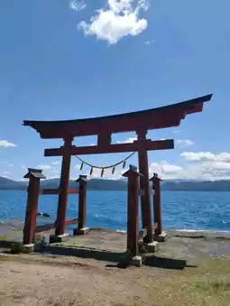 One of the well-known attractions along Lake Tazawa's shores, this shrine is dedicated to Tatsuko, the dragon goddess of the lake. It was previously known as "Dragon Shrine." Its highlight is the large vermilion torii gate by the lake, creating a striking contrast with the vibrant blue waters, making it a perfect spot for photography.