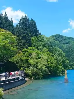 Lake Tazawa is Japan's deepest lake, known for its crystal-clear, vibrant blue waters and picturesque scenery throughout the year. Whether you choose to drive, take the lake bus, enjoy a boat ride, or rent a bicycle for a leisurely exploration, the stunning views around the lake are worth experiencing.