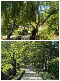 A cluster of samurai houses from the Edo period, spring is the scene of the film "Sakura Chaos," autumn is a painting of "Maple Leaf Hunting." Stroll in kimono along the Hinokinai River embankment, where the stone path echoes with the dialogue of wooden clogs and history.