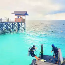 Highlights - It offers comfortable accommodations in traditional wooden chalets built on stilts above the crystal-clear waters. The resort provides easy access to some of the best dive sites in the region, allowing guests to explore the vibrant underwater world teeming with marine life.