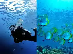 🐠Here, the coral fish schools at the bottom of the water are visible to the naked eye, and large pieces can be easily seen from the glass bottom boat.