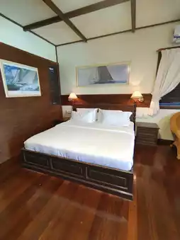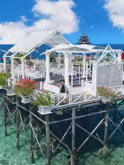 The resort consists of overwater bungalows built on stilts above the turquoise waters of the Celebes Sea. Each bungalow is elegantly furnished and equipped with modern amenities, including air conditioning, private bathrooms, and spacious balconies or sundecks offering panoramic views of the sea.