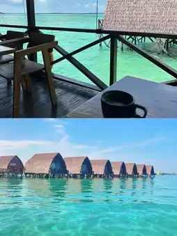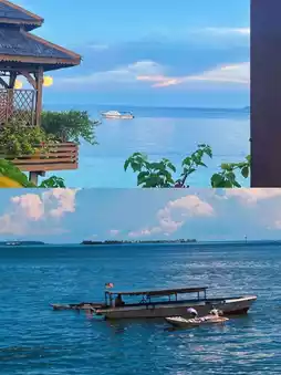 This hotel we stayed in this time was newly built and has a high cost-effectiveness. There are two shuttle services to the island every day, and in addition to three meals a day, afternoon tea☕️ is also provided. Glass boat, internet celebrity trampoline, sea fishing, snorkeling🤿You can do it without leaving home, you can go into the water directly from the room. Sitting in the room watching the sunset over the sea 🌄 and relaxing, with the sea 🌊 waves as your pillow at night, is really healing.