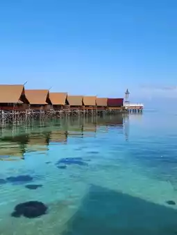 Kapalai Dive Resort, officially known as Sipadan-Kapalai Dive Resort, is a unique overwater resort built on stilts above a sunken island in the Celebes Sea, near Sipadan and Mabul islands in Sabah, Malaysia. This luxurious dive resort offers breathtaking views of turquoise waters and a pristine marine environment, making it a paradise for divers and snorkelers.