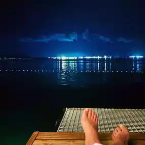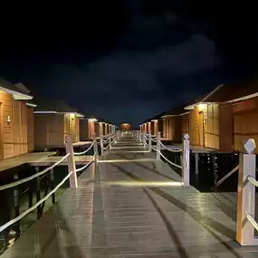 We chose a water villa closer to the shore. During high and low tides, you might notice floating trash like empty bottles. If you prefer a more pristine experience, you can stay further out, but those areas tend to have more nomadic groups wandering around. For travelers concerned about safety, it's recommended to stay in water villas closer to the town.