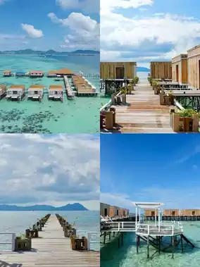 🏝 Kapalai Island: A sandbar with overwater bungalows built on coral reefs, offering a 360-degree view of crystal-clear waters right from your doorstep.