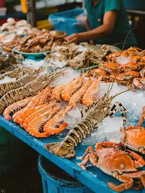 - Go to the “Seafood Market” at 4 PM: Fishermen just returned, tiger prawns 25 RMB each (choose yellow ones!), mantis shrimp 30-50 RMB per jin depending on size