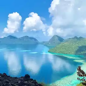 Mabul Island, with its emerald-green sea, is truly a paradise 🏝️. Beneath the crystal-clear waters, the vibrant tropical fish and coral reefs create a breathtaking spectacle ✨.