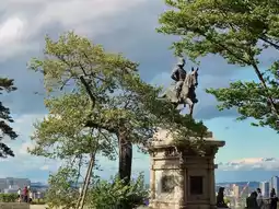 We walked up there from Sendai station. It was long. But definitely worth it (on the way back we took the subway, only 3 stops to Sendai). It is a beautiful climb (steep) and you get to the old castle, then a few more steps and you are before the statue that inspired the Star Wars character. Beautiful view of the city. Going down is a breeze and you will listen to the many birds hiding in the thick trees.