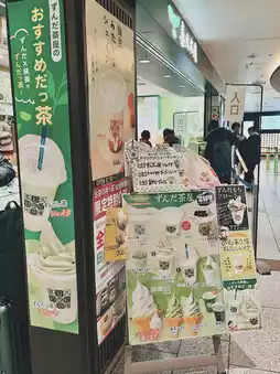The souvenirs you can’t miss when you come to Sendai are all the edamame products. At the same time, Kikusuan is also Gojo Satoru’s favorite. His most recommended one is the one with fresh cream inside, but we only bought it this time. The ordinary edamame mochi and the edamame pearl milkshake enjoyed outside the store. The milkshake is surprisingly refreshing and smooth to drink. After drinking one cup, I still want to have another cup next time I pass by!