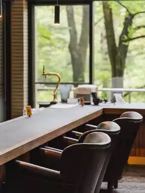 I spent an elegant time looking at the fresh greenery from the bar counter.