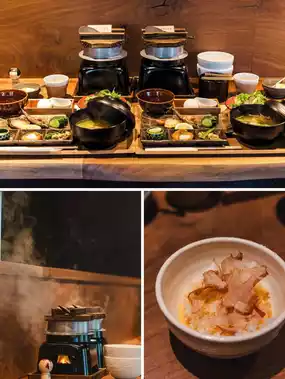 The seafood appetizer, duck shabu-shabu, grilled seasonal vegetables, steak, and more were all delicious and very satisfying.