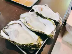 I got a large oyster for 350 yen, so I had it cooked on the spot and ate it raw.