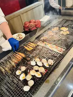 All-you-can-eat snow crab for dinner, grilled beef tongue and seafood,