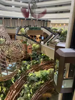 The hotel is very large, and it must have been very grand. But now it seems a bit run-down.