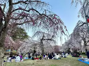 There are many snack stalls here. We tried takoyaki and fried noodles. 🐙 This place is suitable for picnics and leisurely flower viewing. Many families and couples have picnics under the cherry blossoms, which is very romantic.🥹