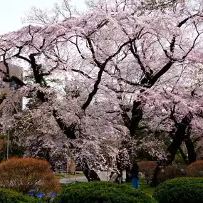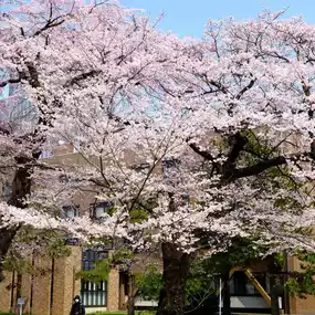 Unlike crowded tourist spots, the campus offered a serene atmosphere with gentle breezes brushing against the flower-laden branches, causing petals to softly drift to the ground. Strolling along pathways carpeted with fallen petals, leaning against historic buildings, or sitting on the grassy lawns while gazing at the vibrant clusters of blossoms above, I was surrounded by tranquility. The only sounds were the whispers of the wind and the petals. Immersing myself in this enchanting cherry blossom paradise for half a day filled my heart and soul with romance and beauty—truly a rare and unforgettable hanami experience!