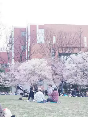 At Nishimachi Park, you can experience the vibrant spring atmosphere, where rows of cherry blossom trees in shades of pink and white adorn the park, creating a picturesque contrast with the surrounding skyscrapers. It feels like a bridge between urban life and nature during springtime. In the heart of the park, picnic mats are spread under the cherry trees, with locals gathered together, children running around, and couples whispering sweet nothings, all enjoying this seasonal feast. A gentle breeze carries a shower of cherry blossoms, adding a touch of poetic charm to the city. In this urban oasis surrounded by cherry blossoms, you can truly feel the warmth and beauty that spring brings to the city.