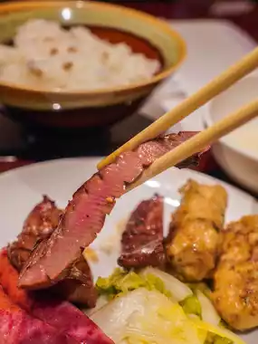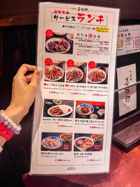 The main dish is charcoal-grilled salted beef tongue, with a slightly charred aroma and chewy texture. It’s paired with sausage and chicken meatballs, creating a layered combination. Served with barley rice, pickles, and beef tongue soup, you can add a bowl of grated yam for JPY 165, which is smooth, refreshing, and complements the beef tongue perfectly. The soup is loaded with green onions, adding a fragrant touch 🫶