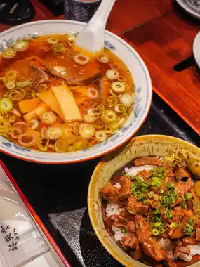 Previously, beef tongue set meals were usually served with barley rice, but this time I decided to try the ramen combo. The broth has a refreshing soy sauce flavor—rich but not overwhelming. The beef tongue is well-seasoned and tender, paired with green onions and bamboo shoots for a delightful texture. It also comes with a bowl of beef tongue rice, which is savory and generously portioned!