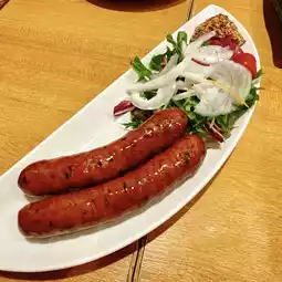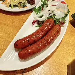 The beef tongue sausage was quite flavorful. Pairing it with the fresh greens on the side helped balance the saltiness. The key is to dip it in the mustard seed sauce—it’s a perfect match.