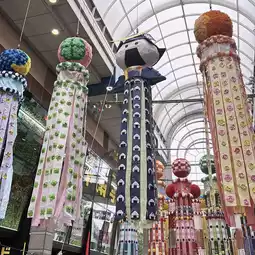 Held annually from August 6-8, this is one of Japan's three major Tanabata festivals. Large Tanabata decorations line the entire shopping arcade, just outside Sendai Station, making it easy for tourists to find. Each store is responsible for decorating the area in front of their shop, so local businesses were particularly extravagant, and the chain store Tutuanna also had impressive, professional decorations.