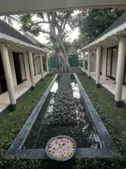 The hotel we booked in Senggigi is Qunci Villas, owned by a South African. Every detail of the hotel is meticulously designed, not only the architecture and furnishings but also the placement of various flowers and plants, all reflecting a sense of Zen. The materials for the buildings and designs come from local and Balinese stones and wood. The hotel has three restaurants, with breakfast being free to order, and for lunch and dinner, you can choose between Asian cuisine, seafood, or an Italian restaurant.