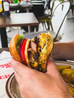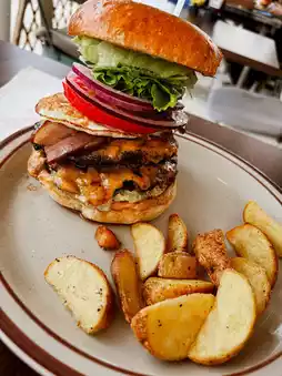 Enjoy the burger while taking in the expansive blue ocean and white sand beach. The thick, juicy patty, fluffy bun, and fresh toppings create a perfect harmony. Every bite is sure to make you think, "This is a real burger!" ✨