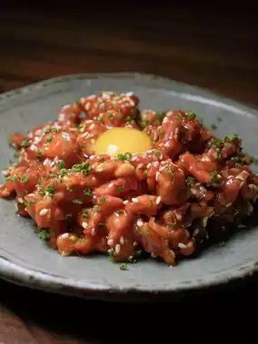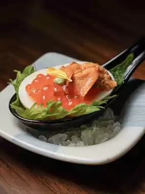 Start your experience with the Organic Egg & Ikura ($12)—a decadent play on textures and taste, where soy-marinated egg, briny ikura, and luscious Hokkaido uni come together in perfect harmony. Or share the Wagyu Beef Tartare ($26), a reimagined Yukke made vibrant with gochujang and topped with a quail yolk, best enjoyed with crispy papadum—a nod to Singapore’s multicultural soul.