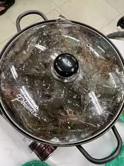 Taisho shrimp, rarely seen in Japan these days, are placed alive in a frying pan on a bed of salt, covered, and steamed.