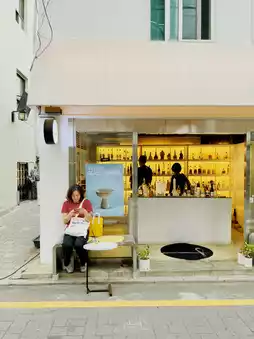 It mainly sells bottles, but you can also taste them at the street-side seats in front of the store,