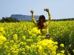 Actually, if you wander along the coastline, you'll find many places where rapeseed flowers are just spread out in the open!