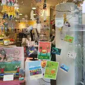 There are so many prop shops on Lee Jung-Seob Street! Today, I'll show you some of the small and cute souvenirs they sell! You can buy various goods like postcards, badges, griptoks, stickers, and hats! I bought a postcard and wrote it to a special person and gave it to him. ㅎㅎ If you go to Lee Jung-Seob Street, don't forget to check out the prop shops!