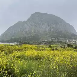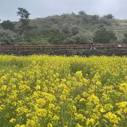 This is a canola flower photo zone where you can take pictures with Sanbangsan Mountain in the background, among the canola flowers in full bloom! The day I visited was a bit cloudy, but it was the prettiest place to see canola flowers in Jeju 🤍