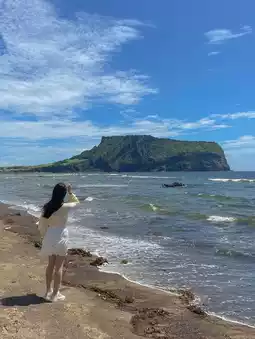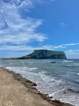 Seongsan Ilchulbong looks like an elephant when viewed from afar. There are places in Jeju Island where you can see Seongsan Ilchulbong at a glance. This is Gwangchigi Beach, one of them. Here, you can see the sea and Seongsan Ilchulbong together. The sea breeze is strong, so it's a bit difficult to take pictures, but the view of Seongsan Ilchulbong in the distance is so pretty!!