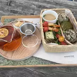 If you’re at Seogwipo, don’t miss these attractions out! You can enjoy a meal at Innisfree Jeju House’s cafe and later, have green tea desserts at O Sulloc Tea Museum!