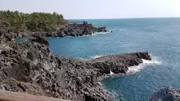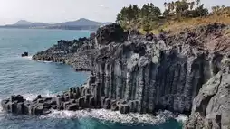 One of the spectacular coastal sites where these columnar joints run about 2 km along Jungmun to Daepo in Seongwipo City, a city on the South coastal side of Jeju Island. The sight of waves crashing against the unique rock formations and gigantic rock pillars was both amazing and magnificent.