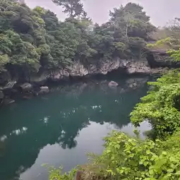 ✨️Soesogak✨️ was designated as a national cultural heritage site along with Oedolgae and Sanbangsan by the Cultural Heritage Administration on June 30, 2011. It refers to the mouth of the Hyodoncheon (孝敦川) that flows between Hahyo-dong, Seogwipo-si and Harye-ri, Namwon-eup. This is where the water flowing through the basalt underground of Jeju gushed out and met the seawater to form a deep pool. The name Soesogak is a Jeju dialect. Soe means Hyodon Village, So means pond, and Gak is a suffix that means the end. It is known as a place with beautiful valley scenery and outstanding scenic beauty.