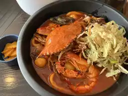 And the seafood tteokbokki, which costs about 30,000 won, was served at the restaurant next to the main building's pool. I was a little hesitant about the price, but it was worth it!