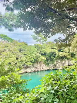 Soesogak is a beautiful photo spot with a unique view and clear water of deep jade color, and the surrounding cliffs provide shade.