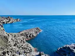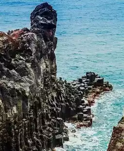 Known as the substitute for Icelandic volcanic rock, the sea water hitting the black reef is very shocking.