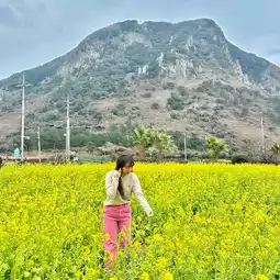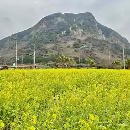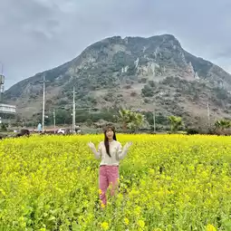 The most beautiful yellow waves in Jeju Island 🌼 Sanbangsan rapeseed flower field