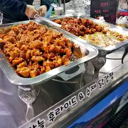 I bought a late-night snack at a market chicken place that fries fresh chicken in the traditional style. It was delicious and reminiscent of the past. Located inside Seogwipo's largest market, Olle Market, I was able to browse other shops and purchase local specialties and souvenirs, which was a nice touch. It's a great way to buy a late-night winter snack and explore Jeju's traditional markets. :)
