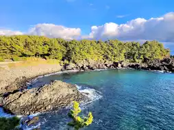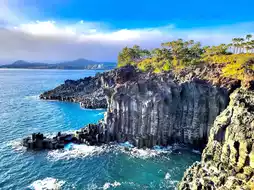 Jusangjeollidae in Jeju, explored in February, was a breathtaking encounter with nature's artistry. The imposing hexagonal basalt pillars, shaped by volcanic activity, presented a stunning sight against the backdrop of the winter seascape. The rugged coastline, accentuated by the crashing waves, added a dramatic touch to the scene. Despite the brisk weather, the geological wonder of Jusangjeollidae was awe-inspiring, offering a glimpse into the island's geological history. Exploring this natural masterpiece during the quieter winter months provided a serene and contemplative experience, highlighting the sheer beauty and raw power of Jeju's coastal landscapes.