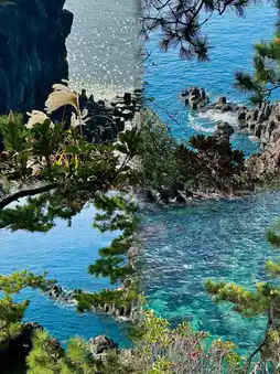 *Jeongbang Waterfall is within walking distance, and the scenery along the way is also very beautiful. Today the rain stopped, and the Jellyfish Sea is really too beautiful!