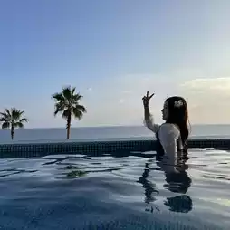 I recommend going to the lounge at sunset and taking a sunset shot. There are beautiful places hidden here and there, so it is great for taking pictures. There is even a path leading to a private beach, so it is highly recommended for a morning walk.