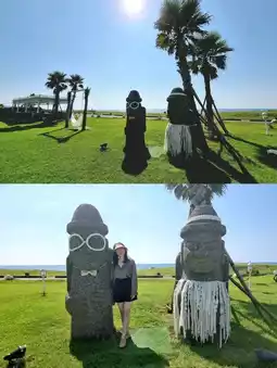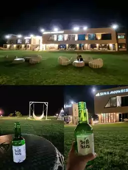 We had a wonderful stay in The Sun and Moon Resort on Jeju Island which is renowned for its beautiful, well-maintained lawns that add to its picturesque setting. The lush greenery of the lawns contrasts beautifully with the surrounding landscape, enhancing the resort's overall aesthetic appeal and offering guests stunning views from different vantage points. The expansive and scenic lawns facing the ocean also provide a perfect backdrop for taking stunning photos. There are lawn chairs and some props for photo taking. I enjoyed chilling on one of the chairs at night while having a drink.
