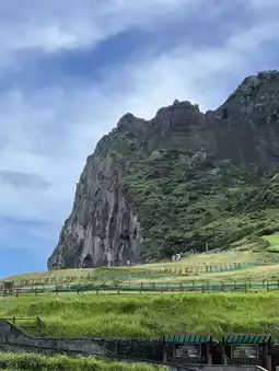 #koreatrip Seongsan-ri is a village located on the eastern side of Jeju Island, South Korea, and is most famous for Seongsan Ilchulbong, also known as Sunrise Peak. This UNESCO World Heritage site is a volcanic tuff cone formed by hydrovolcanic eruptions over 5,000 years ago. The peak offers spectacular views, especially at sunrise, and is surrounded by lush greenery and fields of canola flowers in spring. The area is also popular for its Haenyeo (female divers) who collect seafood in the traditional way. Seongsan-ri provides visitors with a unique blend of natural beauty, cultural heritage, and outdoor activities.